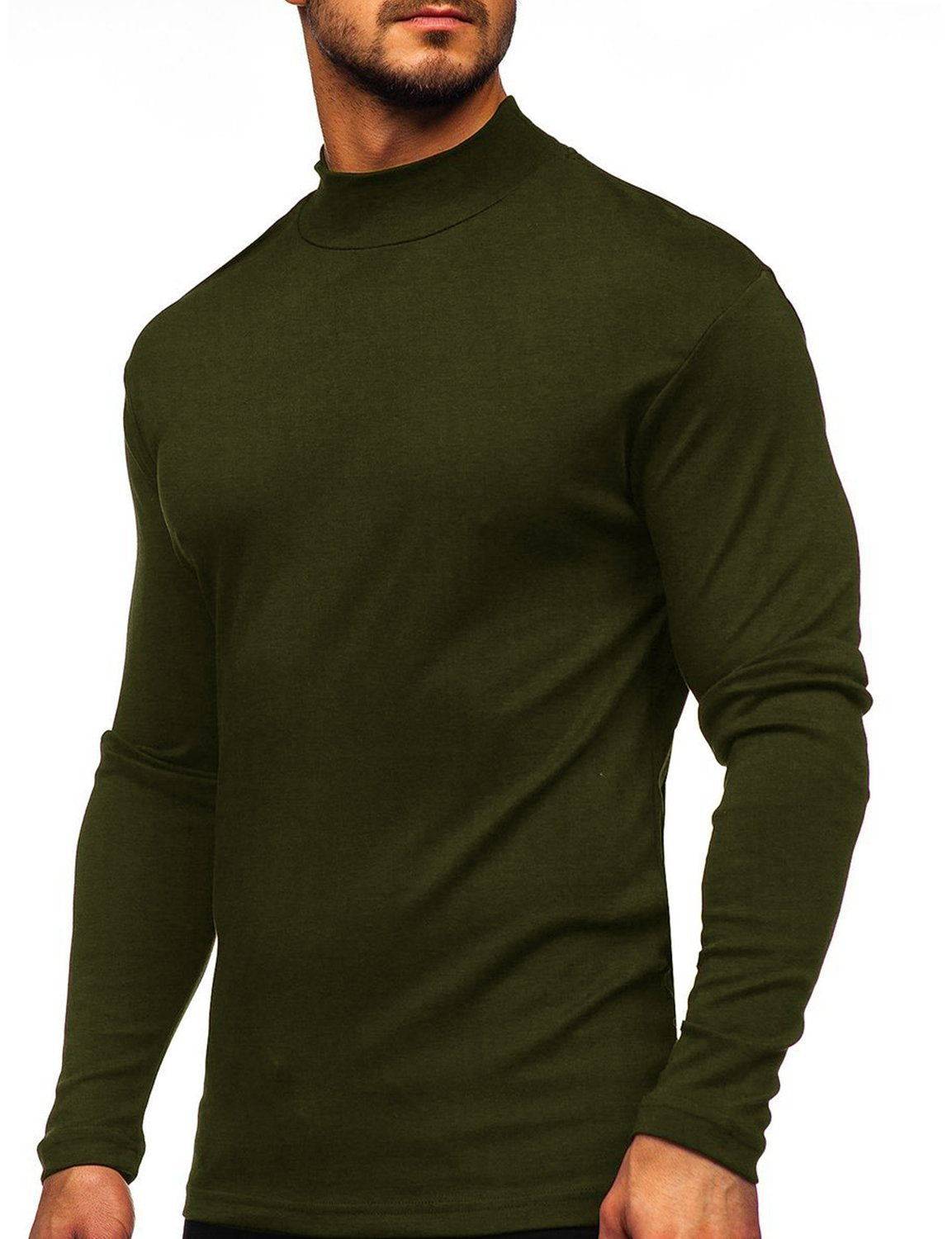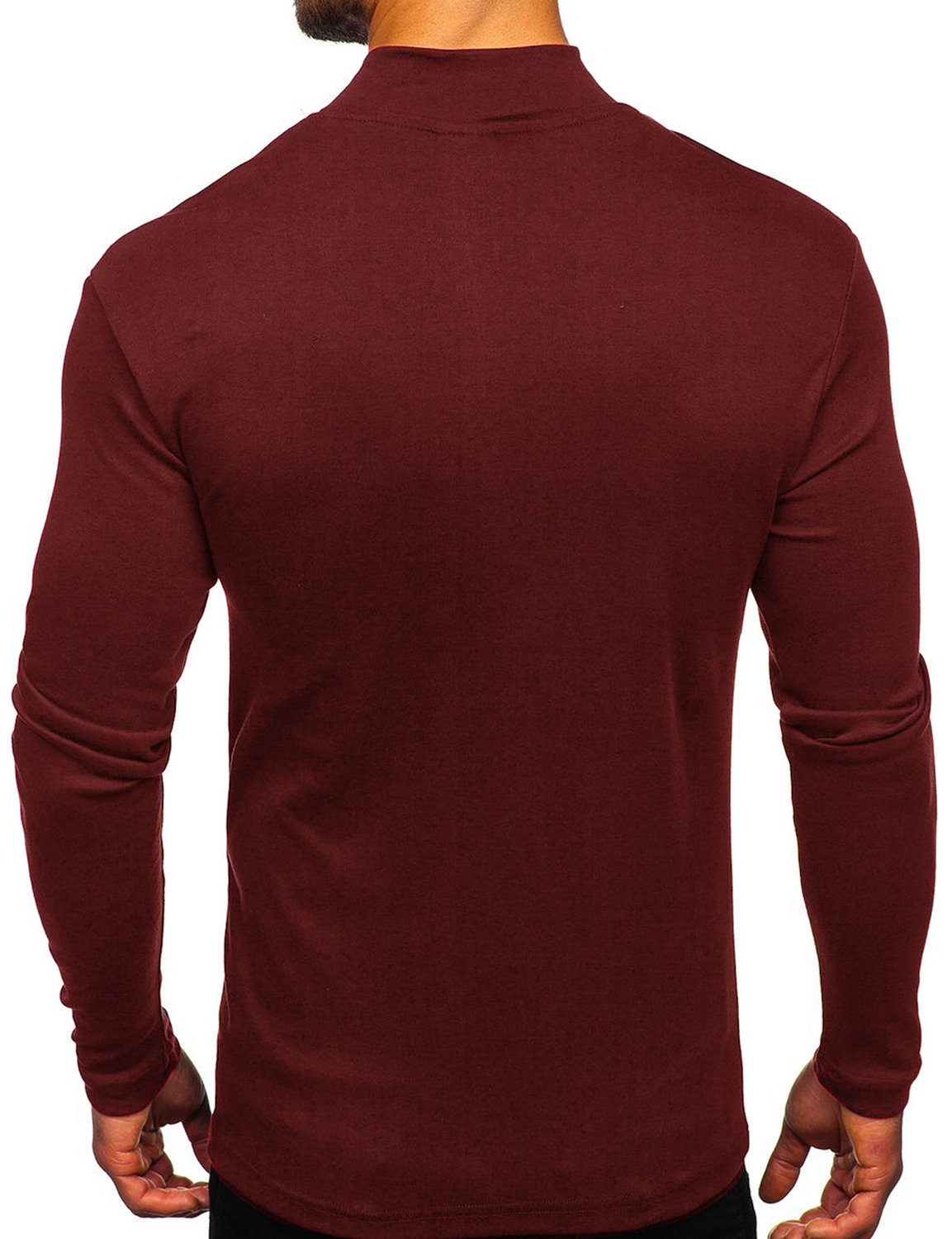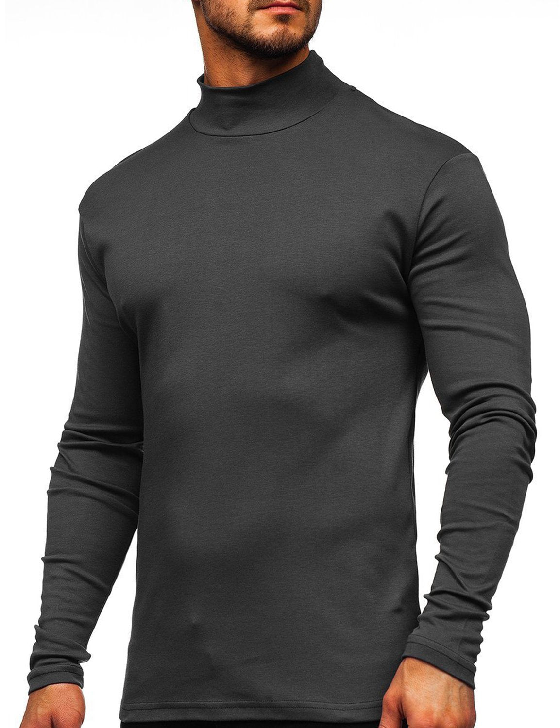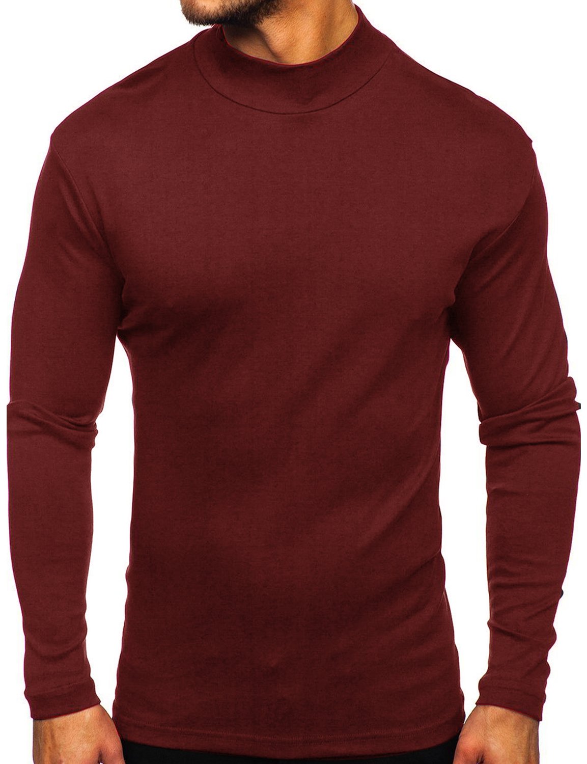 Men's Casual High-Neck Solid Color Long Sleeve T-shirt