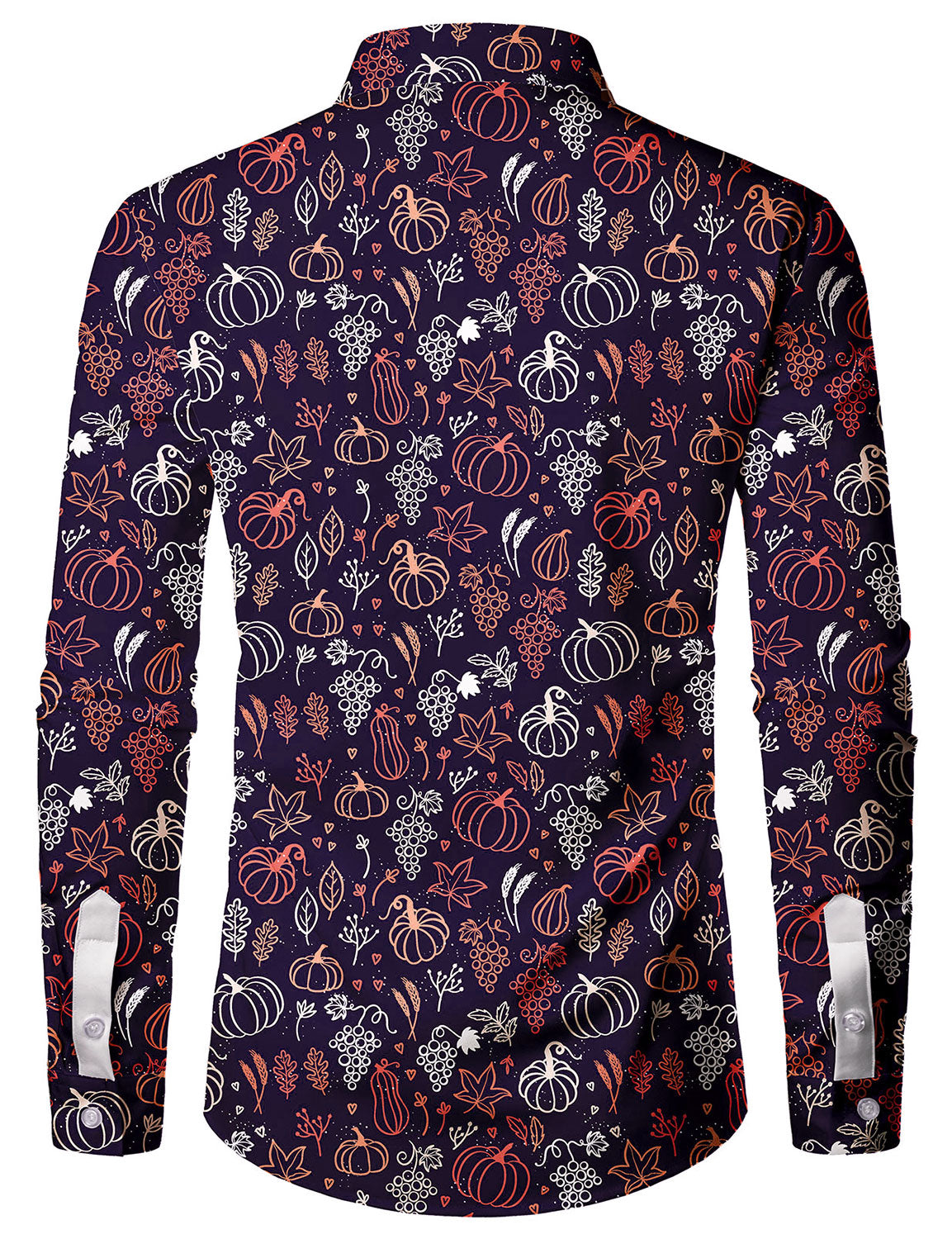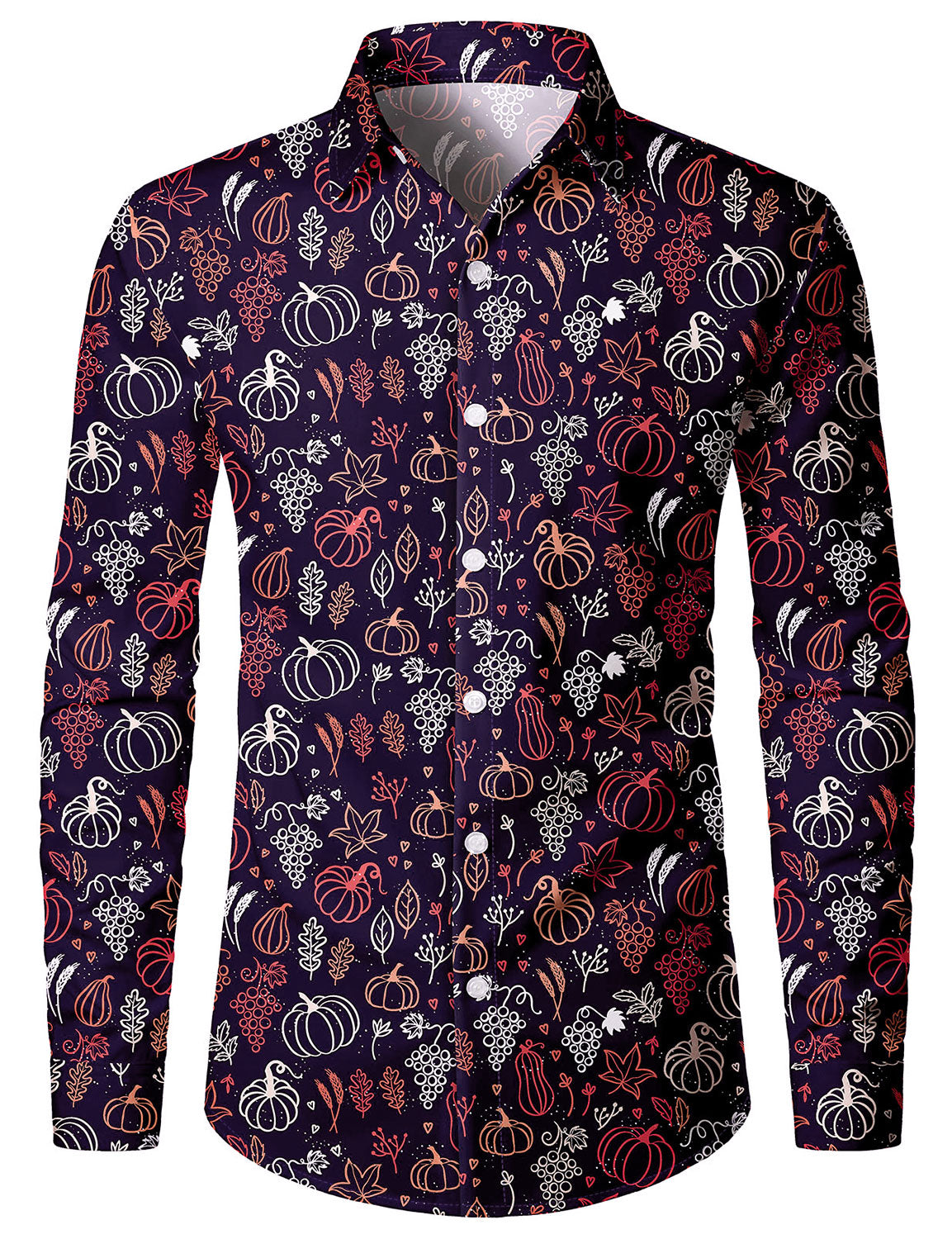Men's Thanksgiving Funny Print Holiday Button Long Sleeve Shirt